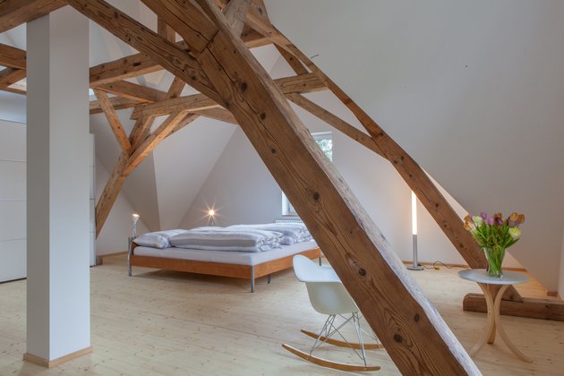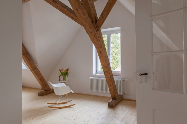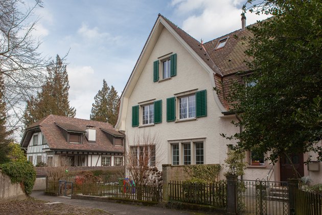 Komplette Renovation des Dachstocks mit Auffrischung der Holztragkonstruktion. Fassadensanierung inklusive Dachuntersicht, Stirnbrett, Sockelputz und Steingewände. Schablonieren des Ornaments.